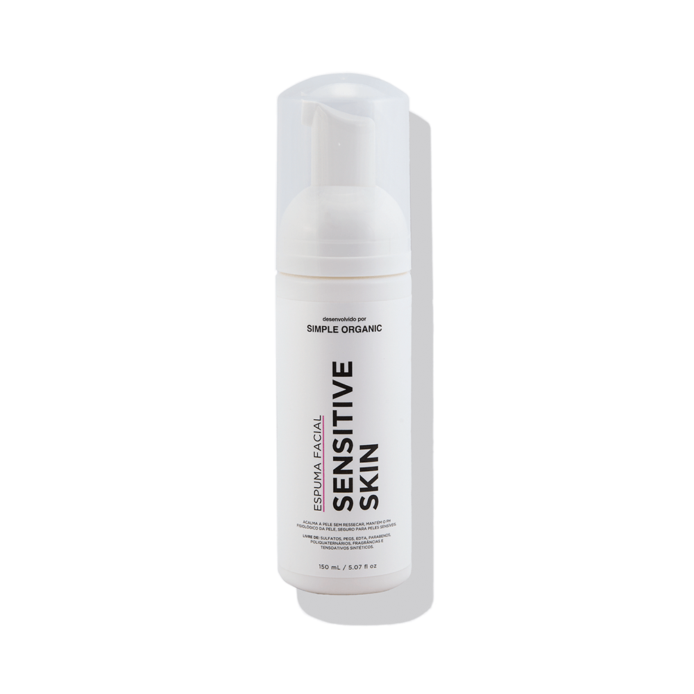 A espuma de limpeza Sensitive Skin é um produto com fórmula cuidadosamente elaborada para atender peles sensíveis. Produto multifuncional, de alta performance que, através de tensoativos suaves, limpa sem agredir a pele. Formulado com alfa-bisabolol, apresenta propriedades anti-inflamatórias, antissépticas, bactericidas, antimicóticas e cicatrizantes. Possui em sua composição extrato de calêndula, aloe vera, camomila e aveia, hidrolato de rosas e óleo essencial de lavanda, ingredientes que, em sinergia, potencializam para acalmar, hidratar e restaurar o equilíbrio de peles que precisam de cuidado especial.