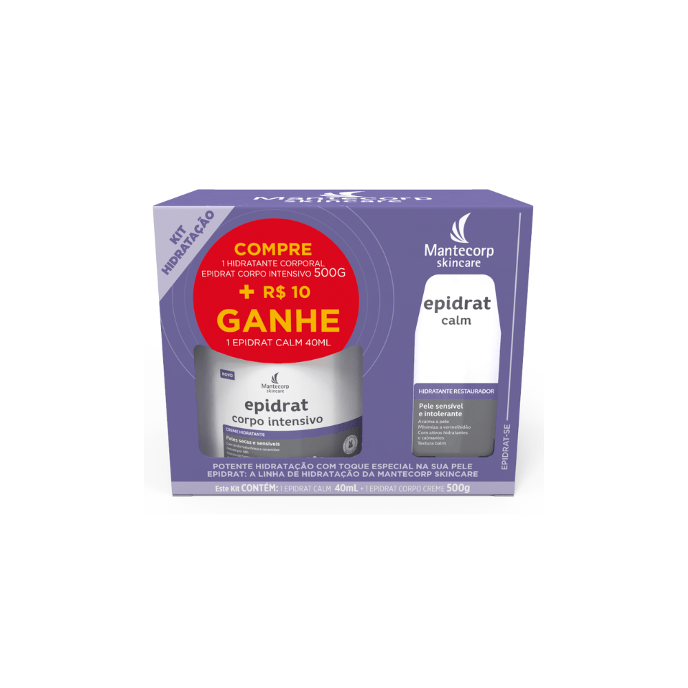 Produtos inclusos no kit: Epidrat Calm 40ml + Epidrat Corpo Intensivo 500g